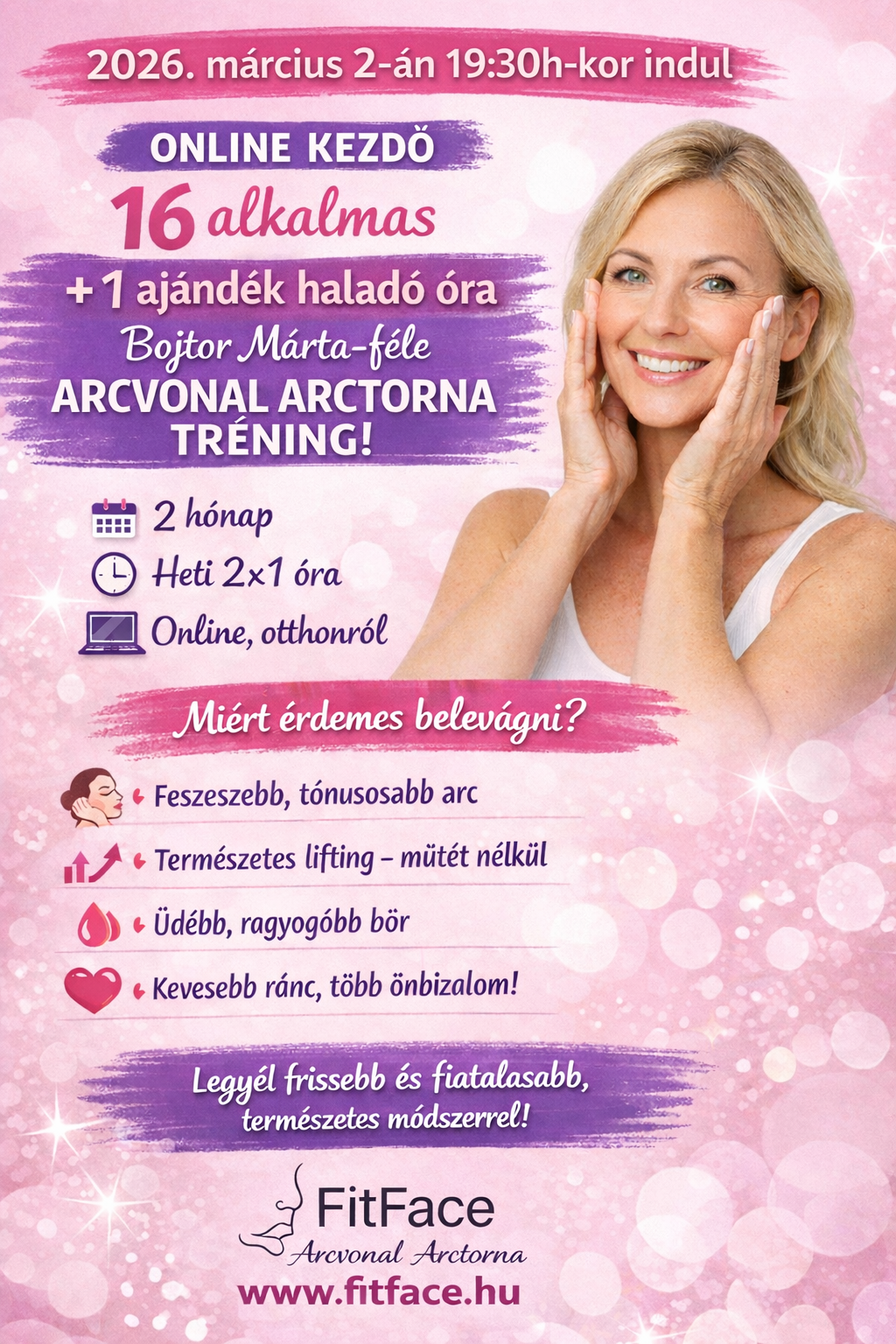 Szeretnéd frissebbnek, élettelibbnek látni az arcod, miközben végre magadra is szánsz egy kis időt? Csatlakozz a kezdő arctorna kurzushoz, ahol könnyed, barátságos hangulatban tanulhatod meg, hogyan erősítsd és lazítsd az arcod izomzatát természetes módon.